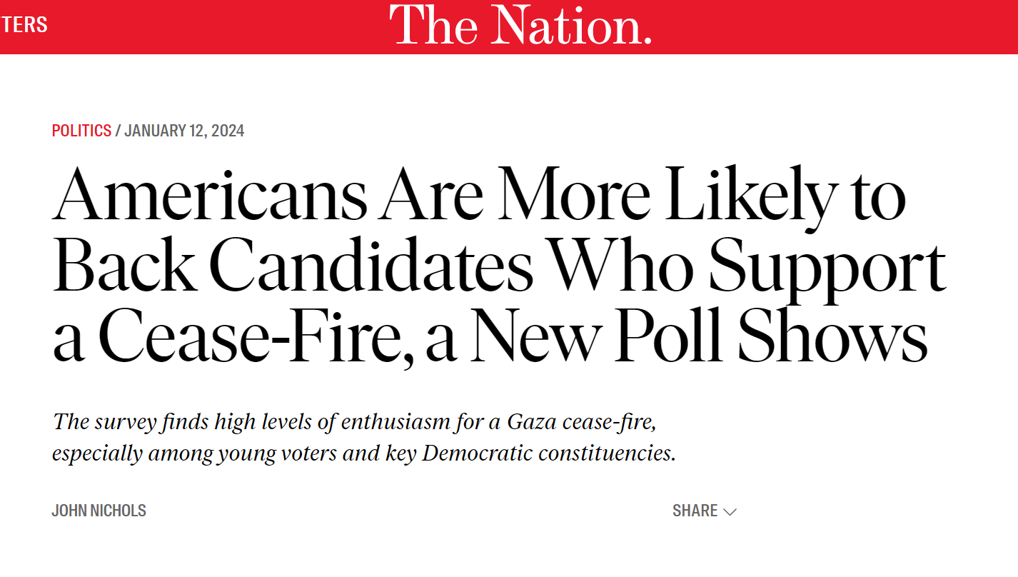 Americans Are More Likely to Back Candidates Who Support a Cease-Fire, a New Poll Shows - The Nation Jan 12 Written By AAI AAI